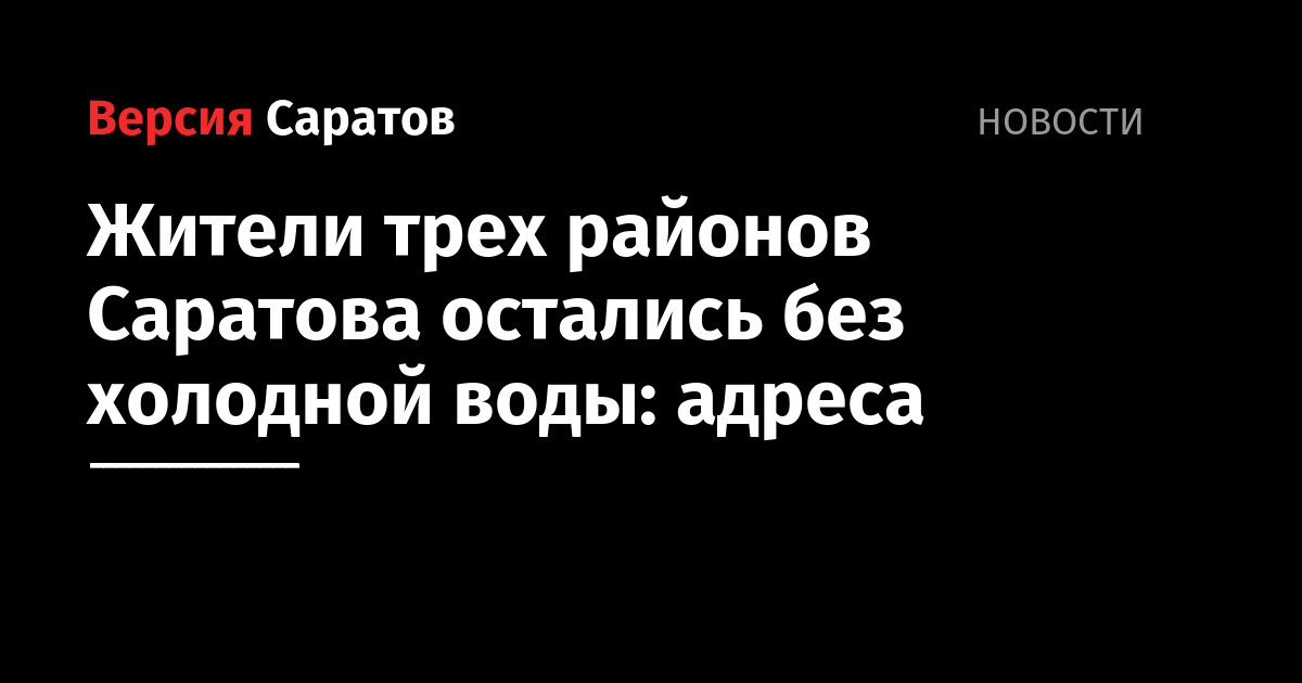 Сегодня, 30 августа, в трех районах Саратова до полуночи не будет холодной воды. Об этом сообщил МУПП «Саратовводоканал».