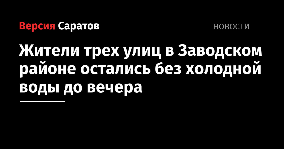 В Заводском районе Саратова до вечера останутся без холодной воды жители трех улиц. Об этом сообщают в ООО «КВС».