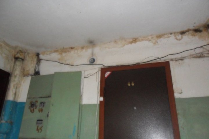 Жительница жалуется: "Вода льется по распределительной коробке, по электрическому щитку, а в подъезде льется прямо из щитовой... Когда началась оттепель, я и мои соседи за ночь выливали по 4 ведра воды. Я обращалась к директору управляющей компании Шадриной В.А. Она мне ответила: "Что вы мне тут показываете фотографии - у меня пол-летки такой".