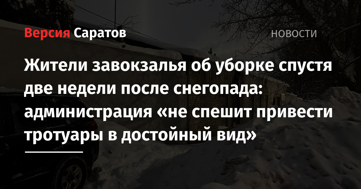 По их мнению, хотя с последнего мощного снегопада прошло уже две недели, администрация Фрунзенского района (глава — Сергей Пименов) «не спешит привести тротуары в достойный вид». Горожане рассказали, что в Telegram-чате районной администрации большая масса жалоб поступает от жителей завокзалья.