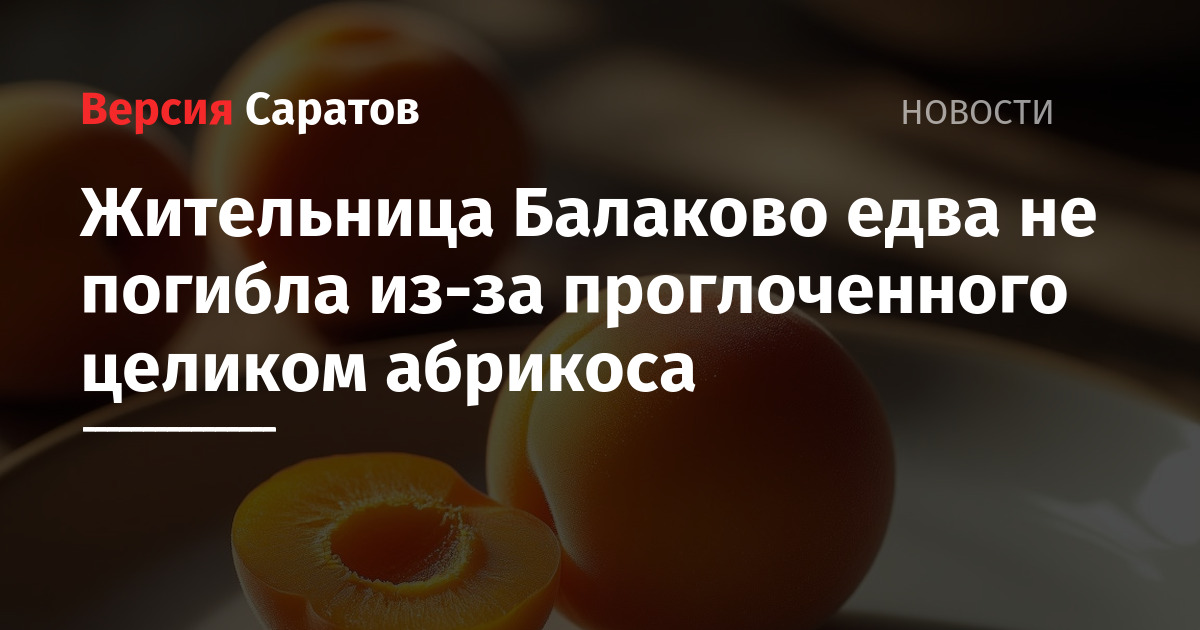 Врачи балаковской городской клинической больницы спасли 72-летнюю женщину, проглотившую абрикос вместе с косточкой. Пенсионерка поступила в больницу с сердечной патологией, однако позже ее начало тошнить и рвать. Как сообщили в лечебном учреждении, «выяснилось, что за три дня до госпитализации женщина, лакомясь замороженными абрикосами, случайно проглотила один фрукт целиком».