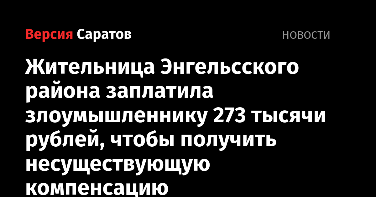 Жительница Энгельсского района заплатила злоумышленнику 273 тысячи рублей, чтобы получить несуществующую компенсацию
