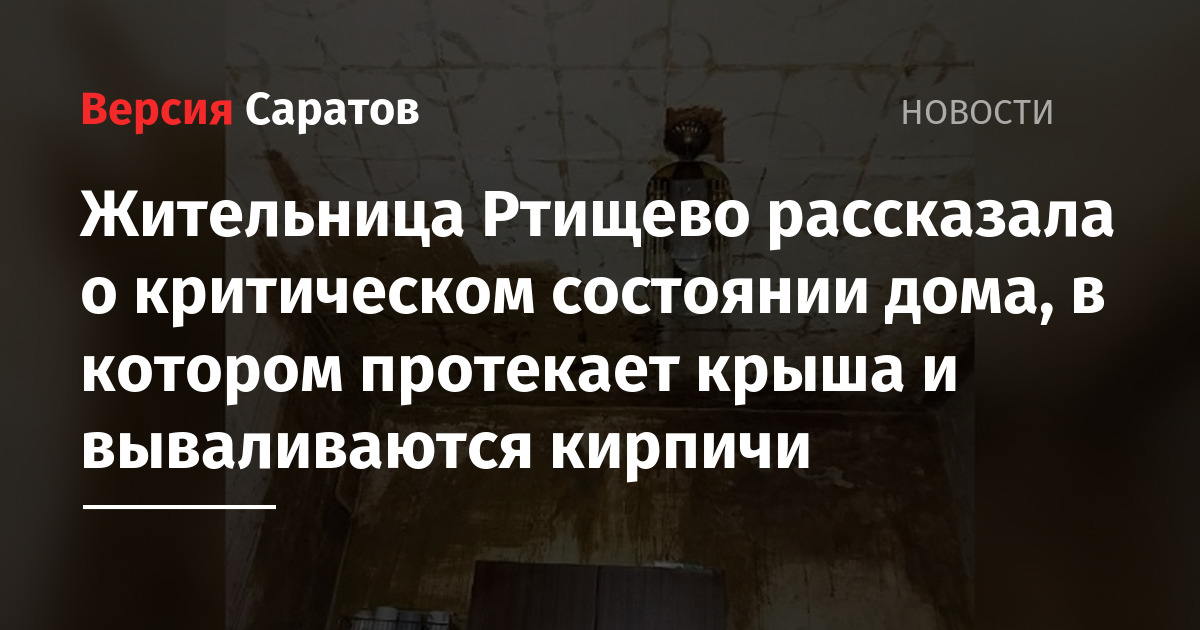 Жительница Ртищево рассказала о критическом состоянии дома, в котором протекает крыша и вываливаются кирпичи