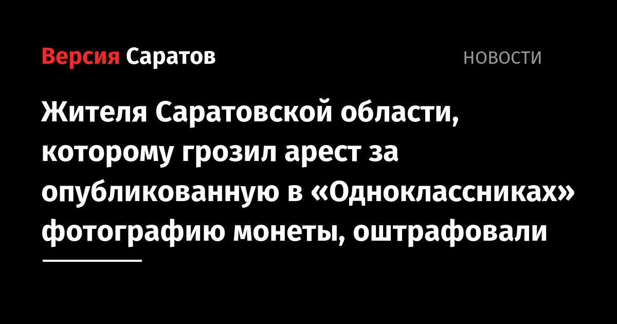 Жителя Саратовской области, на которого составили протокол за опубликование фотографии монеты, оштрафовали на тысячу рублей. Об этом сообщили в ГУ МВД по Саратовской области.