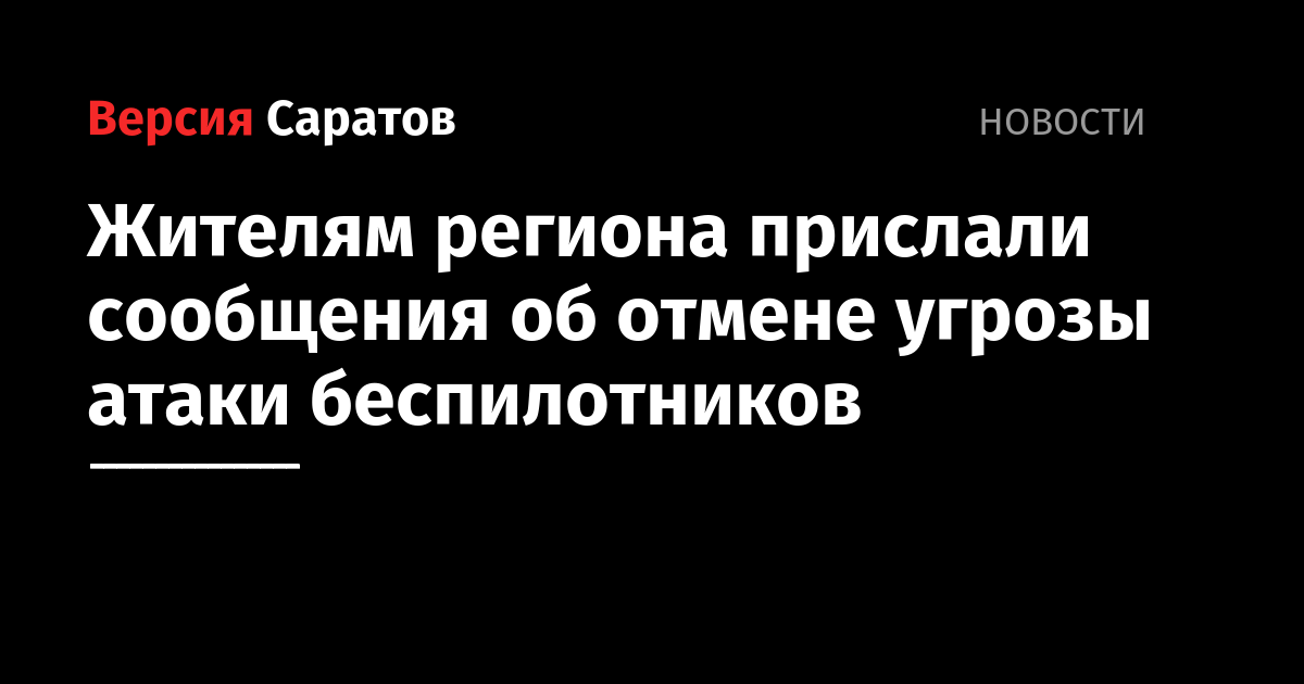 «Внимание! Отбой угрозы атаки БПЛА на территории Саратовской области!» — отмечается в тексте сообщения от РСЧС.