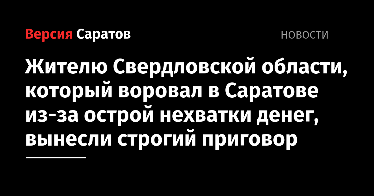 Жителю Свердловской области, который воровал в Саратове из-за острой нехватки денег, вынесли строгий приговор