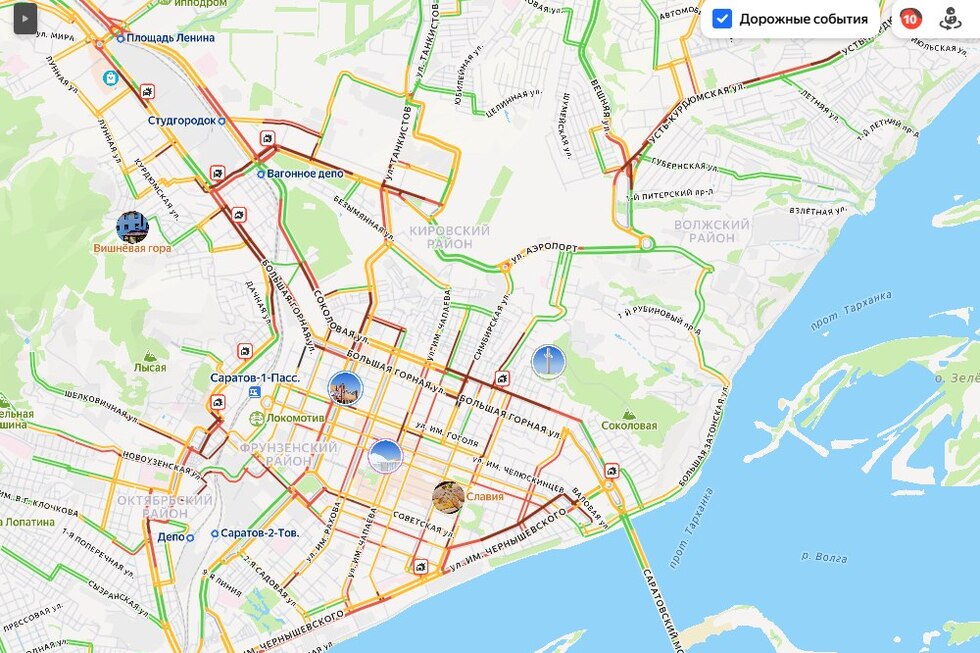 Сегодня, 3 февраля, утром Саратов встал в 10-балльных пробках. Затруднения движения, по данным сервиса «Яндекс.Карты», достигли максимально уровня после 8 часов утра.