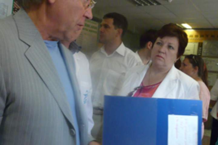 После моста Ипатов отправился в центральную районную поликлинику, где придирчиво полистал журналы записи на прием к узким специалистам. Далеко не все ему понравилось. «Мы сейчас поднимемся наверх и увидим, как там люди сидят на скамеечке и ждут очереди», - предсказал он и уверенно направился на второй этаж. Однако там его ждал сюрприз – очередей не было. Несколько человек, ждущих своего приема к разным специалистам, с любопытством смотрели на главу региона. Павел Леонидович сориентировался мгновенно: «Я вижу, что здесь проблем нет, я вижу, что здесь очередей нет, в отличие от пятой поликлиники, где народу намного больше у кабинетов сидит». И заспешил вниз по лестнице. Между пролетами сразу образовалась небольшая пробка. «Министров не толкайте, пожалуйста, - проворчал вице-губернатор Александр Бабичев. - Они на дороге не валяются».