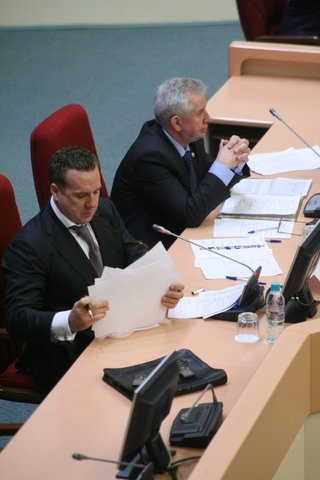 Выборы во вторую по значимости комиссию – по местному самоуправлению – прошли также по хорошо отрепетированной схеме. Шестеро депутатских прим – Козин, Крайнов, Колязина, Марков, Максимов и Злобнова, – вошедшие в состав так называемой «бюджетки», заняли кресла и в этой комиссии. Еще два места отошли Александру Ванцову и Сергею Нестерову. Остальные роли были распределены между «новичками» думы – Маргаритой Козловой, Олегом Подбороновым, Ольгой Поповой, Владимиром Попковым, Игорем Саловым, Юрием Ерофеевым и Константином Лекомцевым. По странному стечению обстоятельств, за членов комиссии по МСУ раз от раза голосовало уже не 28, а 29 человек. Возможно, кому-то из единороссов были одинаково неприятны все 15 членов комиссии по бюджетно-финансовым вопросам. Ну, или просто для красоты цифру поменяли – нельзя же делать спектакль монотонным. Коммунистов, кстати, снова «прокатили». «Даже мертвого льва боятся шакалы", - угрюмо прокомментировал итоги голосования Геннадий Турунтаев.