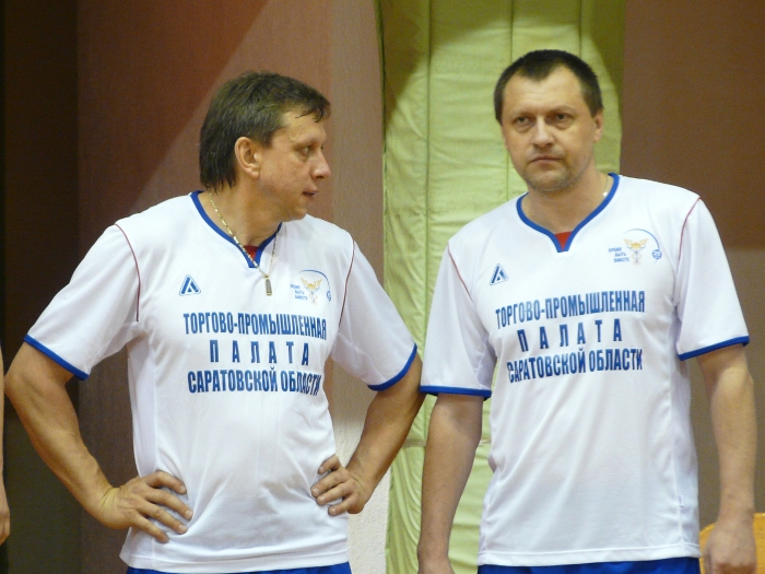 От торгово-промышленной палаты был изначально заявлен ее президент – Максим Фатеев. Он даже продефилировал перед началом игры по полю с футболкой в руках, но переодеваться в итоге так и не стал, просидев всю игру на трибуне. На поле за него отдувались замдиректора ООО «Бюро оценки собственности» Максим Блинов, эксперт ТПП Олег Дубровский, директор ТПП по внешним связям Денис Соболев, главный энергетик ЗАО «Профессионал» Федор Кожокарь, заместитель директора по безопасности и кадрам ФГУП «Саратовский агрегатный завод» Олег Кравчук, член правления ТПП Станислав Стародумов и гендиректор ООО «Тантал-Щит» Валерий Стукалин.