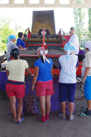 Но нам это удалось, потому что кортеж почти сразу съехал на проселочную дорогу, где особо не разгонишься. Но даже там губернатор ездил с такой скоростью, что пыль стояла столбом, как будто тут только что проскакал табун лошадей. Так мы, словно смерч, пронеслись по основным овощеводческим хозяйствам Энгельсского района, оставляя после себя густое облако пыли. Губернатор, видимо, лично решил проверить качество продуктов, которые попадают на стол к саратовцам, поэтому в каждом хозяйстве брал образцы овощей для дальнейшего изучения. Первая остановка произошла в КФХ Крючкова, где сам хозяин продемонстрировал гостям поля с луком, картофелем и сахарной свеклой. Фермер заверил губернатора, что стоимость его овощей на рынке не превышает 8-10 рублей, тогда как себестоимость составляет 7. Павел Леонидович похвалил и лук, и его хозяина и уже уходя с поля, решил опробовать новую оросительную систему. «Осторожно, Павел Леонидович, там напор хороший!» - только и успел крикнуть фермер перед тем, как губернатор окатил водой стоящих в радиусе 5 метров журналистов. Учитывая жару, они были бы, наверное, этому рады, если бы не дорогостоящая техника...